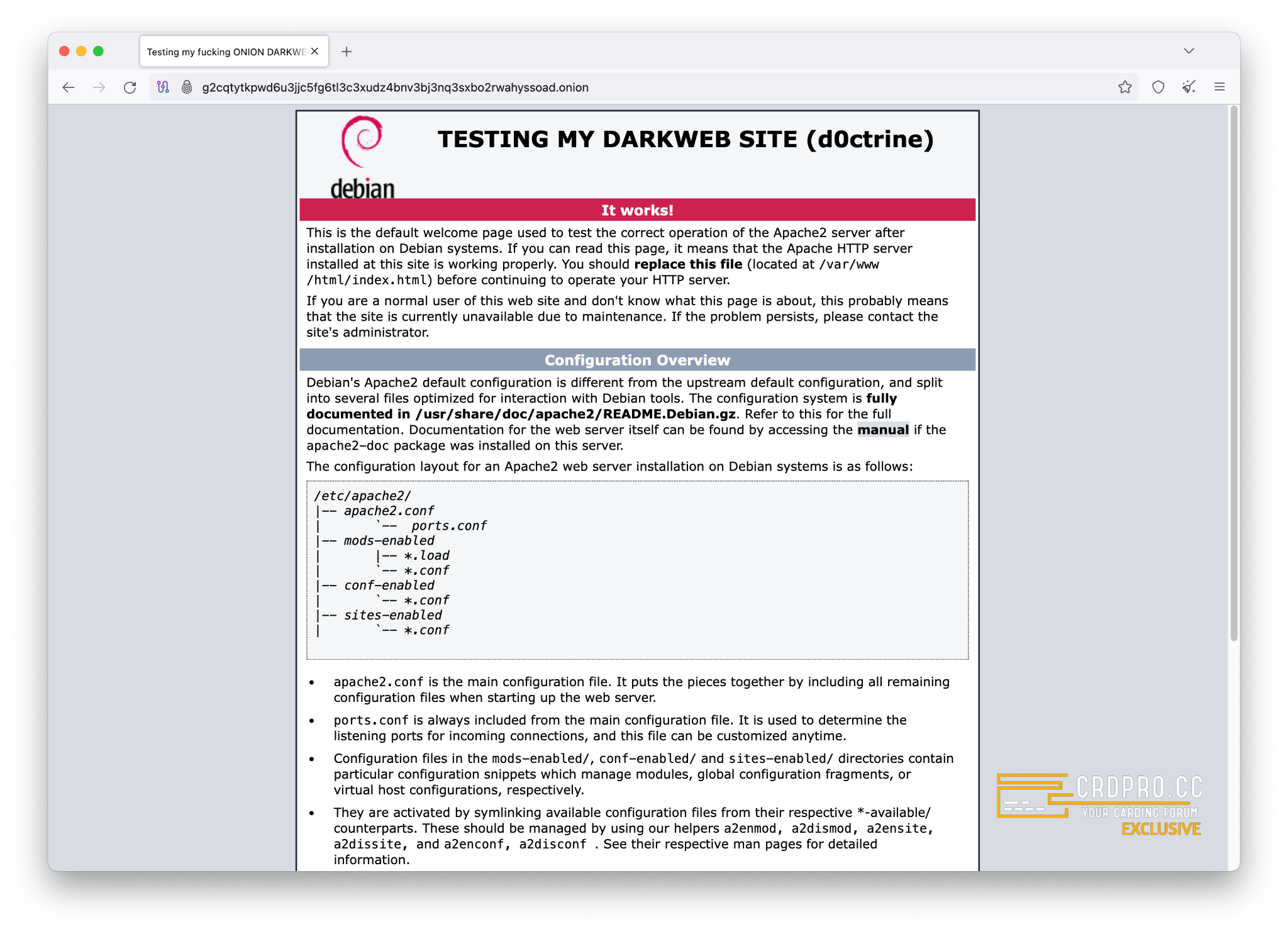 Fire up Tor Browser and navigate to your .onion address. If you see your test page, congratu-fucking-lations. You've just hosted your first .onion site. And I'm flattered I'm the one who devirginized you.