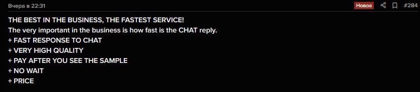 На протяжении 5 лет помогаем пройти верификации и разблокировать безнадежные аккаунты. Документы проходят несколько этапов проверки специалистами, чтобы каждая буква или цифра стояла на своем месте. Больше не нужно ждать ответа часами. Среднее время от момента обращения до выдачи заказа - 30 минут. Остались сомнения?