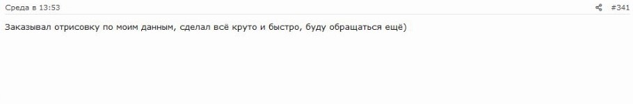 Персональное предложение новым клиентам. Дарим скидку в 30% на следующий заказ за отзыв на форуме! Успей заказать отрисовку до конца месяца по сниженным ценам.