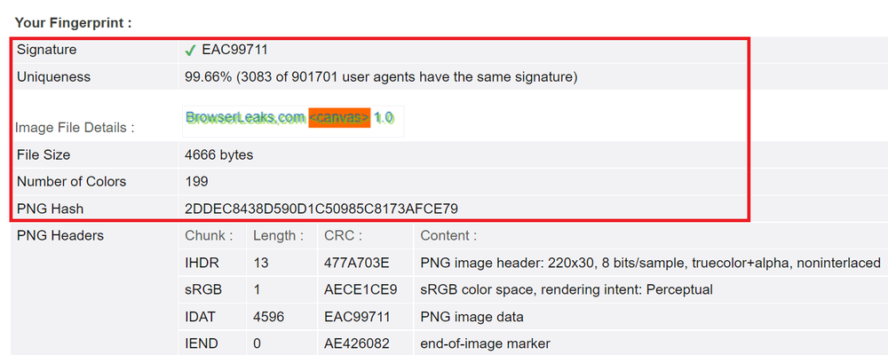 17 different laptops in a row produced the same canvas signature.
